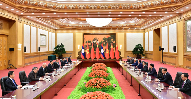 10月20日上午,中共中央总书记、国家主席习近平在北京人民大会堂会见来华出席第三届“一带一路”国际合作高峰论坛并进行工作访问的老挝人民革命党中央总书记、国家主席通伦。